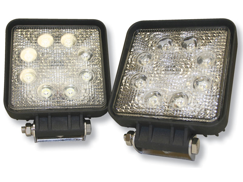 • Work Lights – High-intensity LED flood beam in hinged bracket swivels to direct light. 13-foot power cord has automotive-style quick connections.