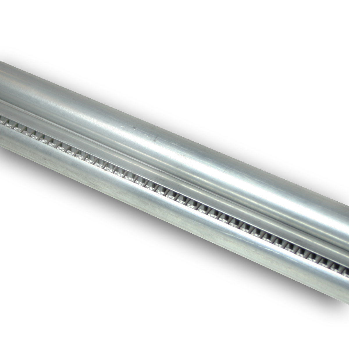 Non-stretch 1/4″ solid braid rope with heavy-duty steel tension spring keeps tarp parallel to the U-joint while rolling over bows and end caps. Functions well in cold weather.