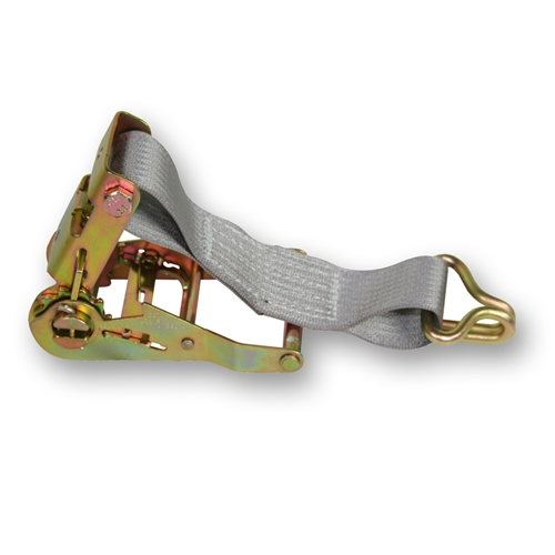 2″ wide ridge strap with adjustable ratchet and hook attachment.